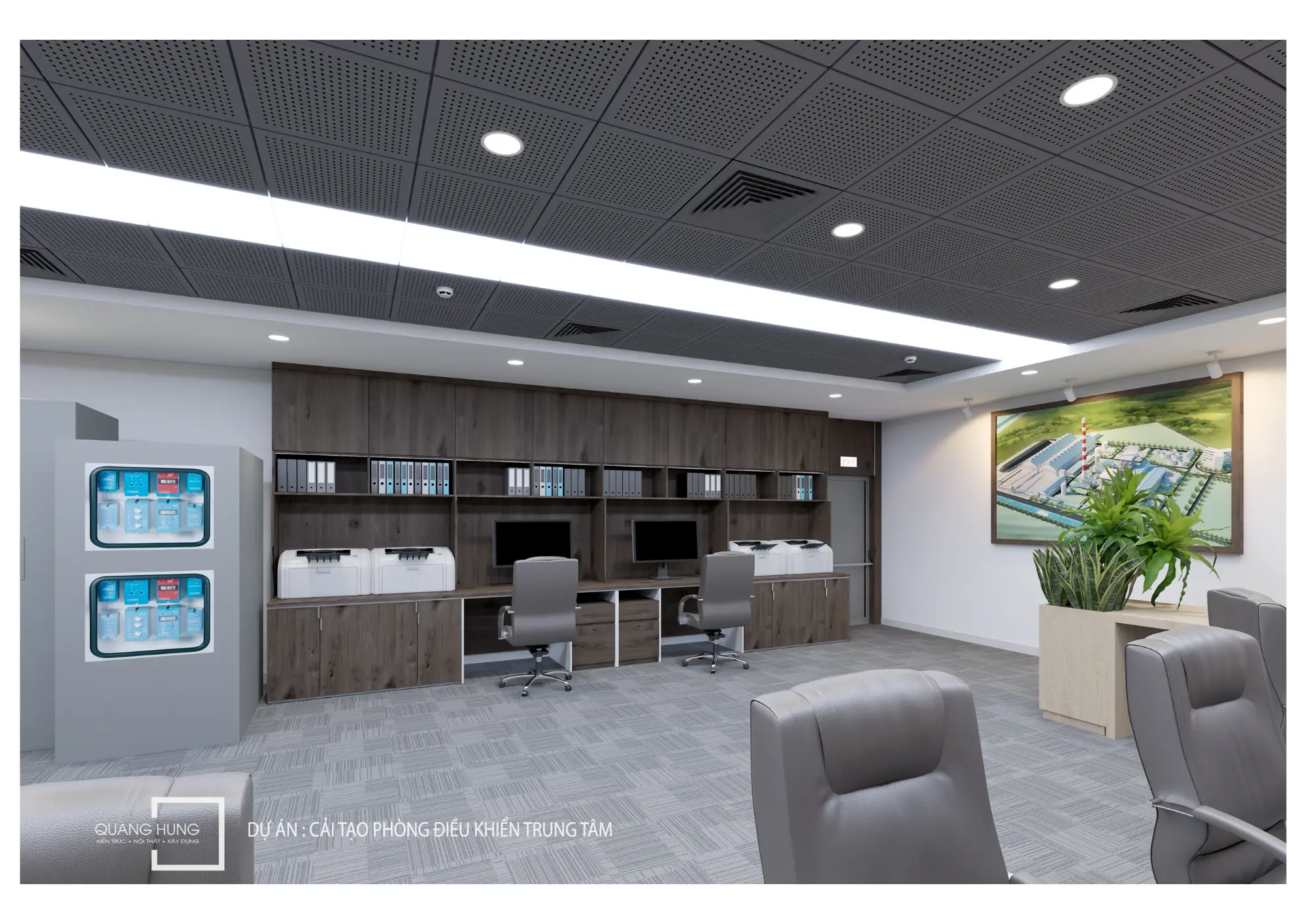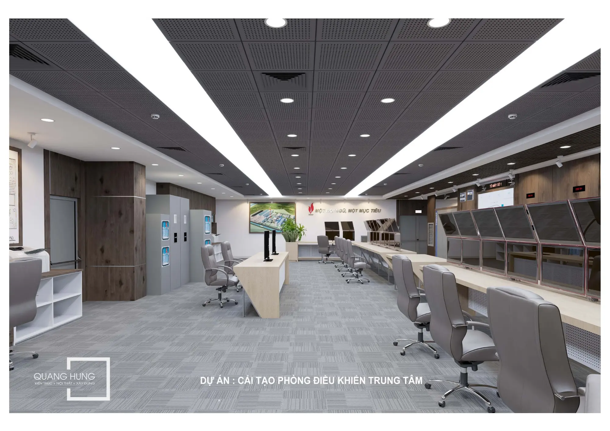 Phòng Điều Khiển Trung Tâm là khu vực quan trọng nhất của nhà làm việc trung tâm, yêu cầu cao về kỹ thuật, công năng và tính ổn định.