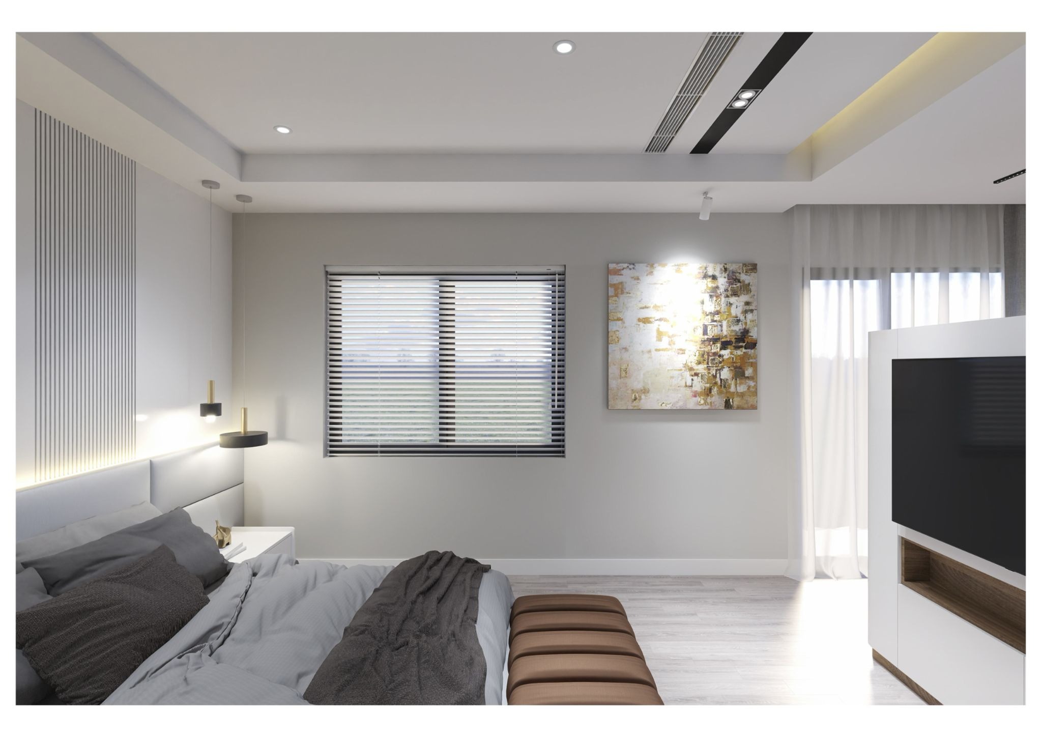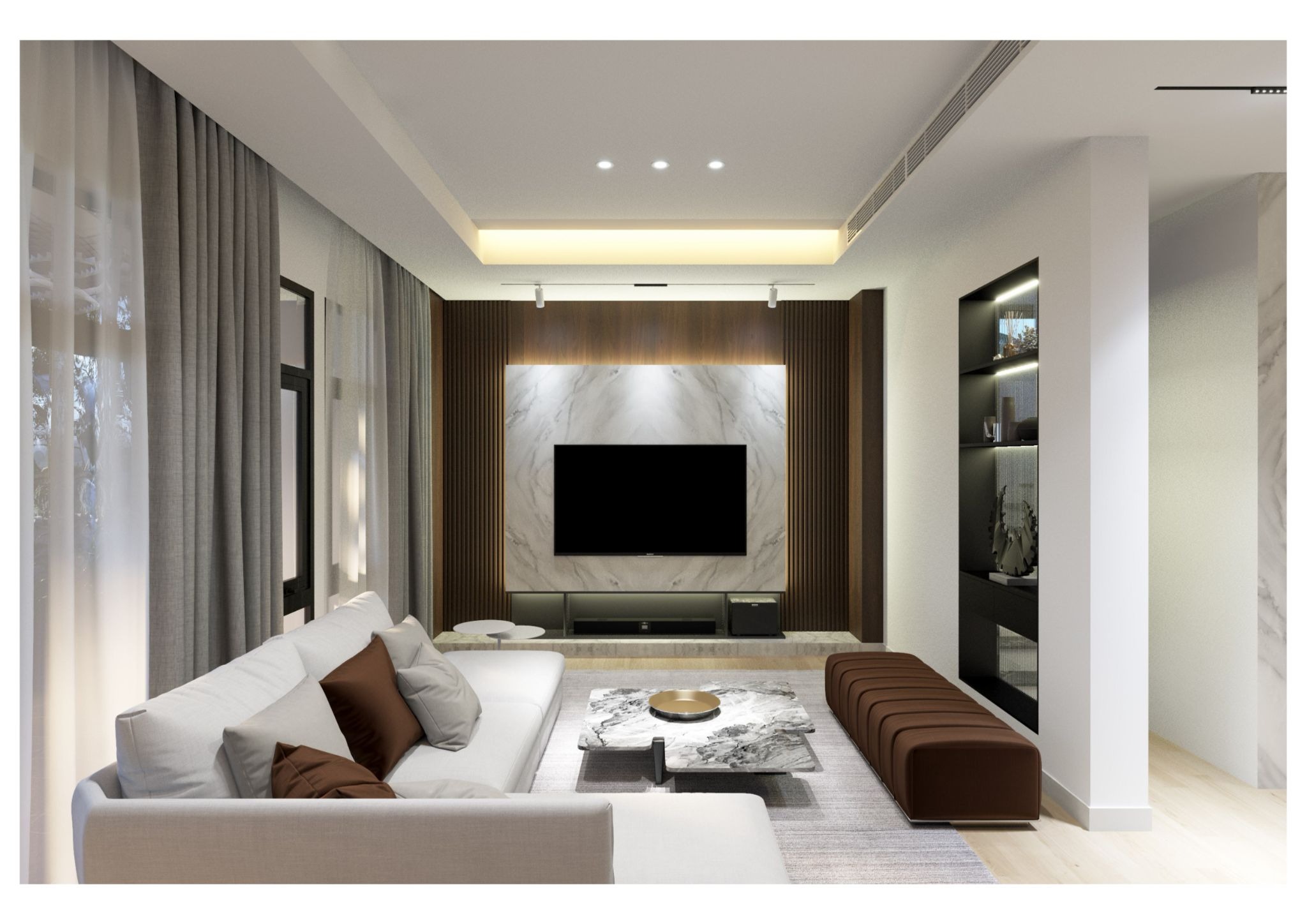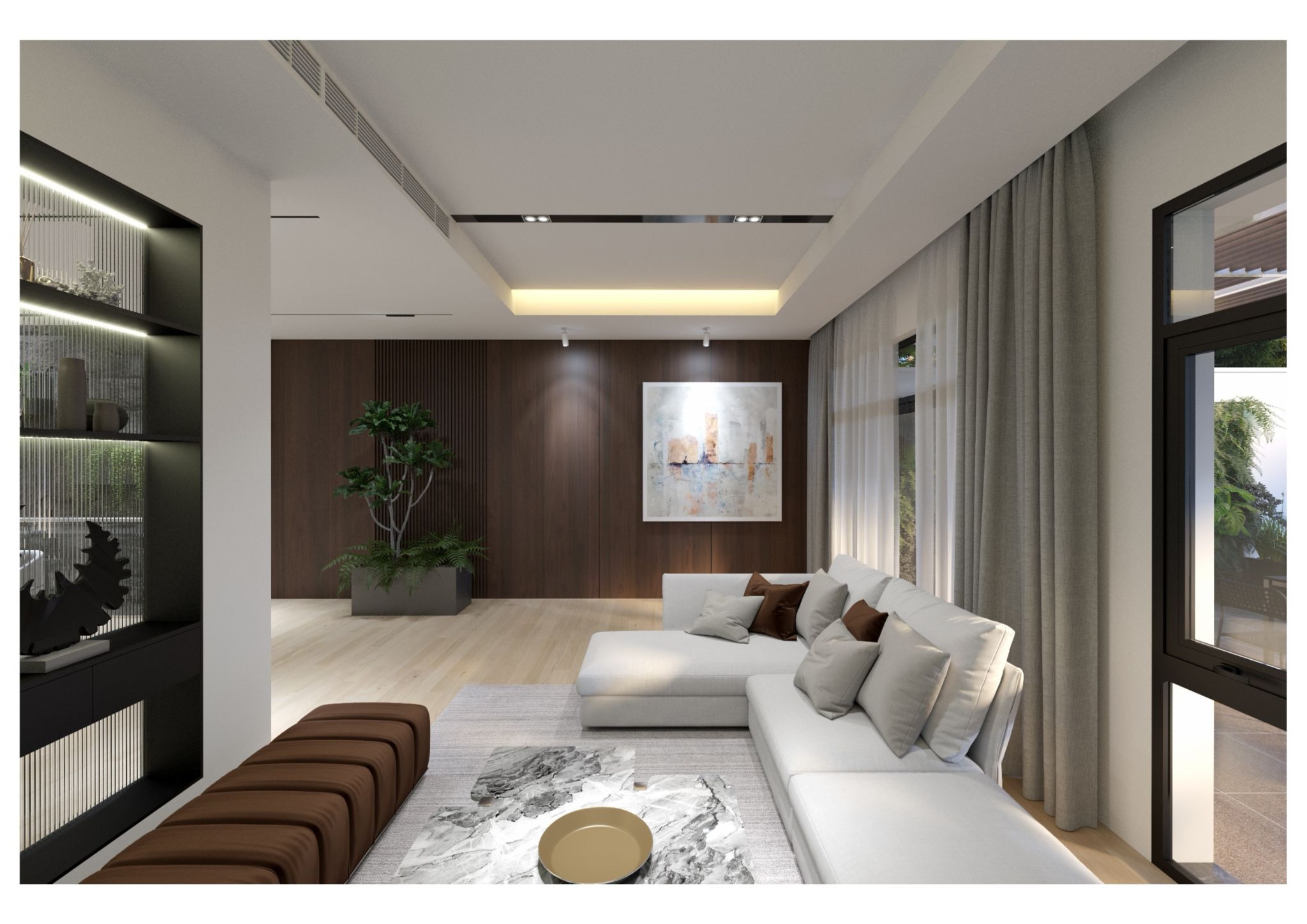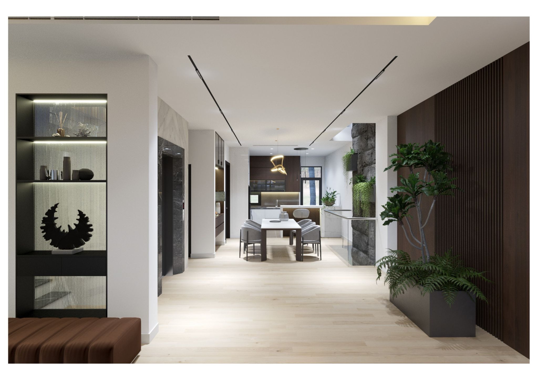 Sự kết hợp hài hòa giữa vật liệu, màu sắc và ánh sáng góp phần tạo nên một tổng thể cân đối, sang trọng và dễ chịu.