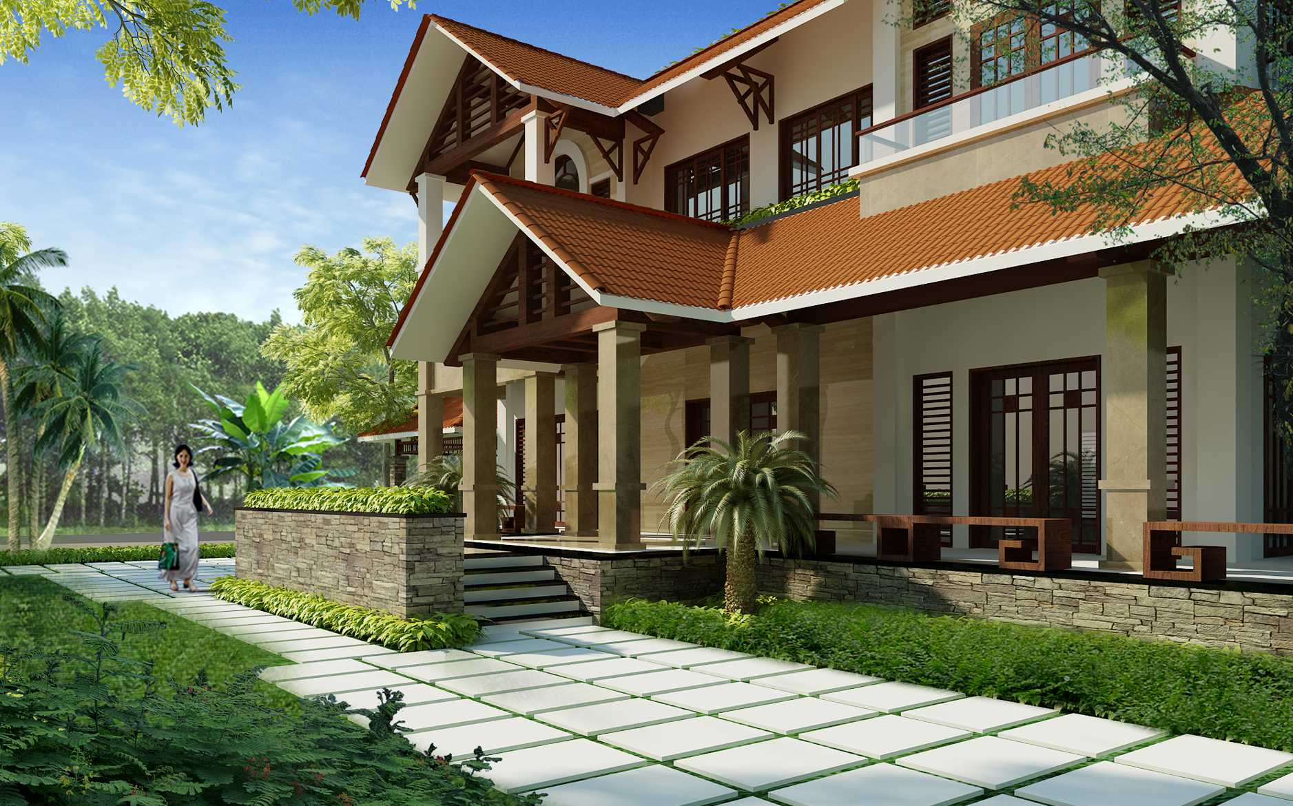 ✔ Hiên sâu → giảm nắng trực tiếp