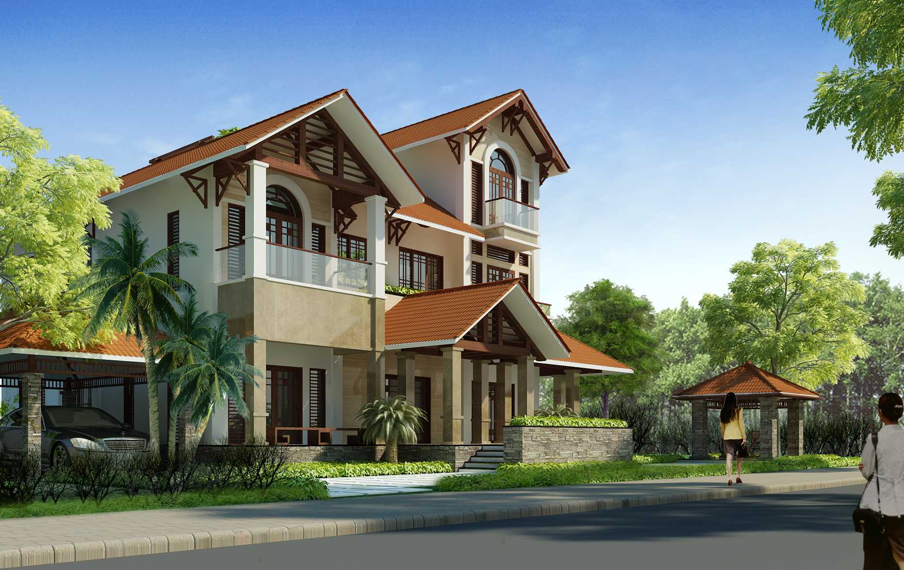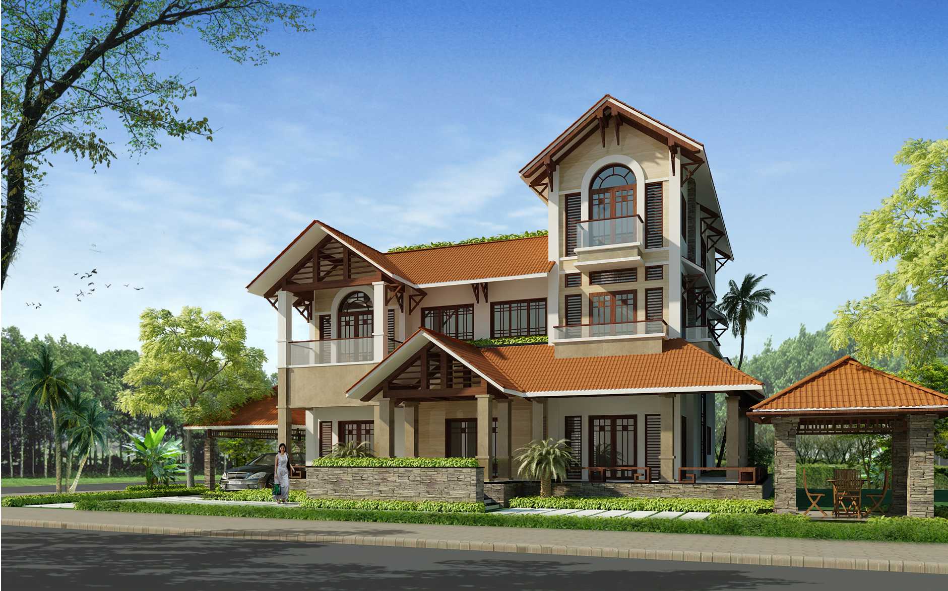 BIỆT THỰ CAO CẤP 3 TẦNG MÁI THÁI 16X16m, 4 PHÒNG NGỦ - CHI PHÍ CHỈ KHOẢNG 3.5 TỶ